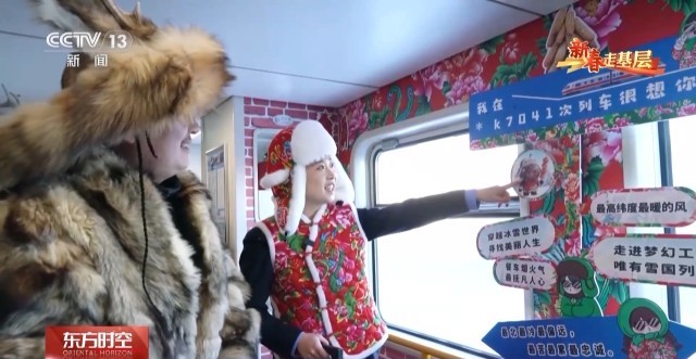 从哈尔滨到漠河的K7041次列车一定会让您大开眼界:红砖炕头、东北大花儿,冻梨高粱饴,口弦转手帕。绿皮火车一旦“穿上了东北大花袄”,这喜庆的感觉一下子就上来了。