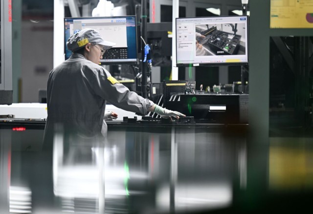 工作人员在联想天津零碳智造工厂笔记本生产线进行作业。新华社记者赵子硕 摄