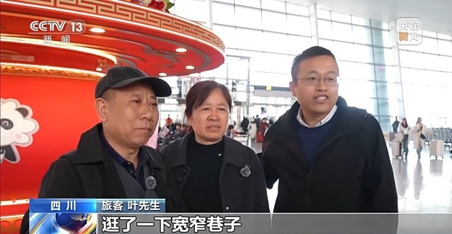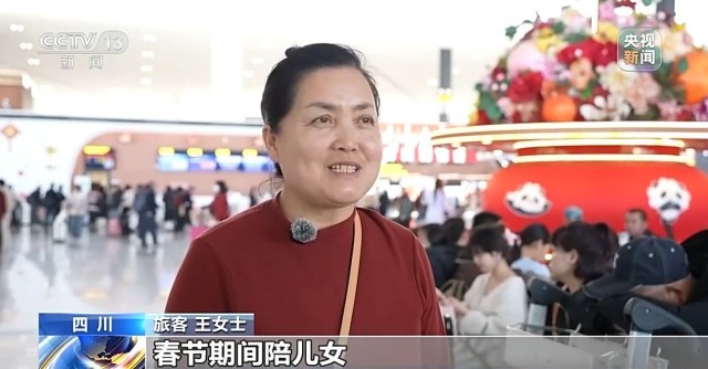 旅客 王女士:我是从甘肃兰州过来的,今年春节期间陪儿女,在成都过年。与往年不一样,往年都是他们陪我们过年,今年我们陪他们来过年,玩得也挺好的。