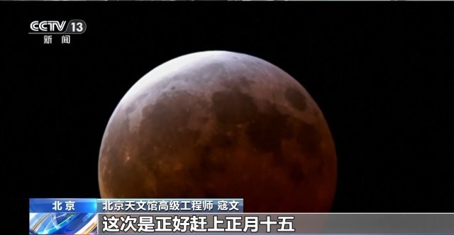 北京天文馆高级工程师 寇文:每年月食最多也就是发生3次,最少一次也没有。这次正好赶上正月十五,其实这个就尤其显得罕见了,你往前查大概2007年、2008年出现过,往后要到2054年才会再赶上一次月食发生在正月十五,但是可惜那一次咱们国家看不到,真正能够看到下一次元宵节的月全食要等到2072年。