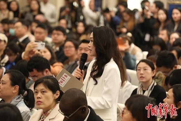 3月3日,北京,人民大会堂一层新闻发布厅,全国政协十四届四次会议新闻发布会上,中青报·中青网记者胡春艳提问。中青报·中青网记者 陈剑/摄