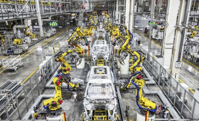 这是2025年9月19日在位于重庆市两江新区的赛力斯汽车超级工厂拍摄的自动化生产作业现场。