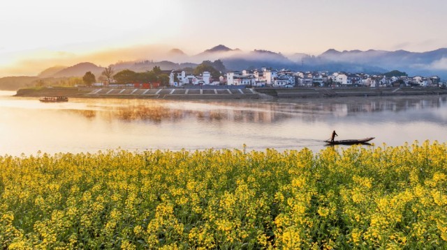 这是2025年3月20日在安徽省黄山市歙县新安江畔拍摄的风光。