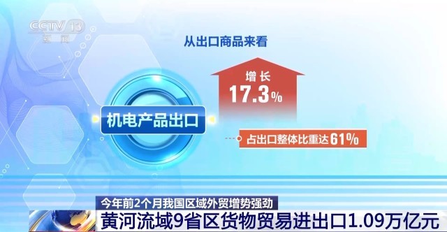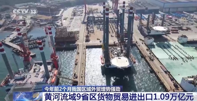 据海关统计,今年前2个月,黄河流域9省区货物贸易进出口总值达1.09万亿元,同比增长15.4%,创历史同期新高。