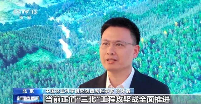 中国林业科学研究院首席科学家 张怀清:当前正值“三北”工程攻坚战全面推进攻坚克难的关键阶段,科学治沙理念已经从单一植被建设,转变为全域生态修复。我们也正在利用遥感、人工智能和大数据,让治沙能够更加科学,更加高效,科技赋能正帮助我们筑牢这座北疆绿色长城。