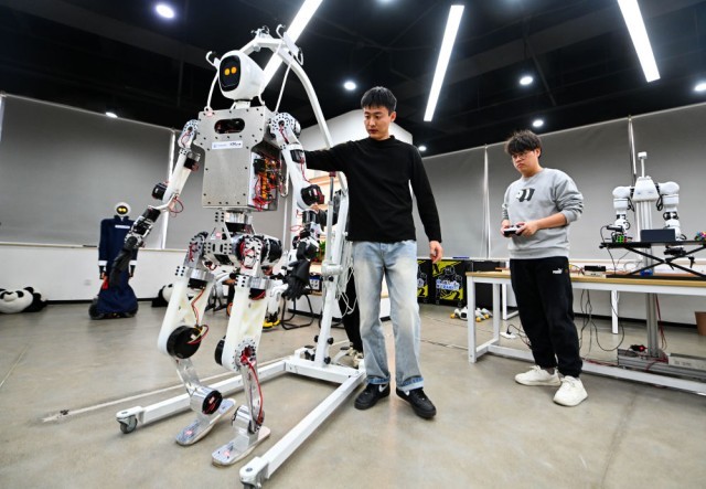 2026年2月27日,在位于天津滨海高新区的天津木牛流马科技发展股份有限公司,工作人员对一款具身机器人进行测试验证。新华社记者 赵子硕 摄