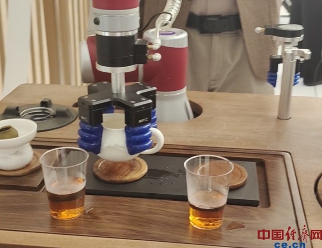 茶艺机器人可模拟煮茶大师手法,提供便捷、地道的用茶体验。中国经济网记者 朱晓倩/摄