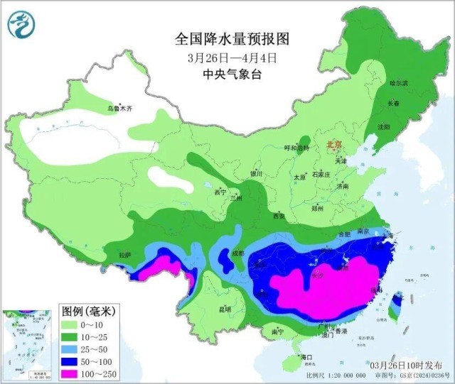 4月5日(清明节)—8日,预计江南、华南北部及重庆、贵州东部等地累计降水量有40~80毫米,部分地区超过100毫米,较常年同期偏多。