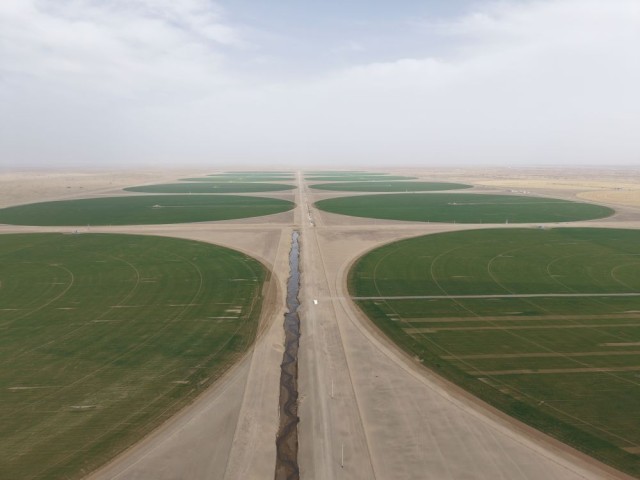 解读:对比2025年3月和2026年3月的两张卫星影像,清晰显示了一个个与沙漠形成鲜明对比的绿色“同心圆”如从天降,直观呈现“沙漠变良田”的治理奇迹。