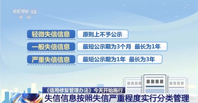 失信信息按严重程度分类管理 《信用修复管理办法》今起施行