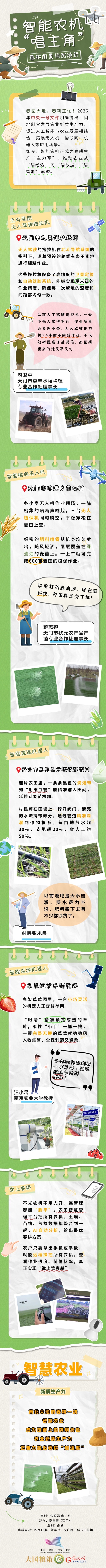 编者按:春回大地,春耕正忙!2026年中央一号文件明确提出:因地制宜发展农业新质生产力,促进人工智能与农业发展相结合,拓展无人机、物联网、机器人等应用场景。如今,祖国大地的南北田野上,智能农机正成为春耕生产“主力军”,推动农业从“靠经验”向“靠数据”“靠智能”转型。