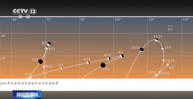 北京天文馆专家介绍,本年度水星将出现三次西大距,4日是今年第一次,但是本次观测条件一般:因为水星升起时间偏晚,日出时地平高度较低,很快就会被晨光覆盖。不过,天文爱好者也不用遗憾,因为当天是C/2026 A1彗星抵达近日点。这是一颗曾经预报亮度可能超过金星的年度最亮彗星。