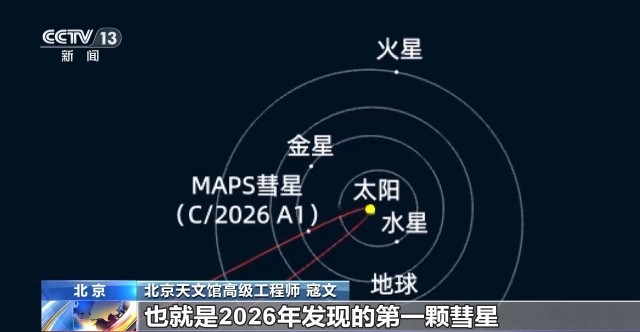 北京天文馆高级工程师 寇文:2026年A1,也就是2026年发现的第一颗彗星。这颗彗星是一颗掠日彗星,它在过近日点时离太阳非常近,近到只有几十万千米,也就是说它和太阳几乎是擦边而过。