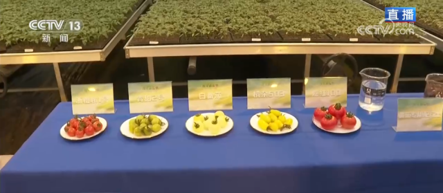 在这里,最惊艳记者的,是这里的番茄。这里有60多个品种的番茄,目前也陆续进入到成熟期。这个叫“浙樱粉”,是常见的小番茄;这个绿色的叫“青甜二号”,工作人员说它在七分熟时酸甜比最好,所以还没变色就能摘了;还有这种白番茄是杂交品种,一般用作化妆品的功能性原料。这个形状特别的长得像花生,也被叫作“花生果”,相对来说更耐高温。这个个头大的,也是草莓番茄里颜色最为深红的一款。