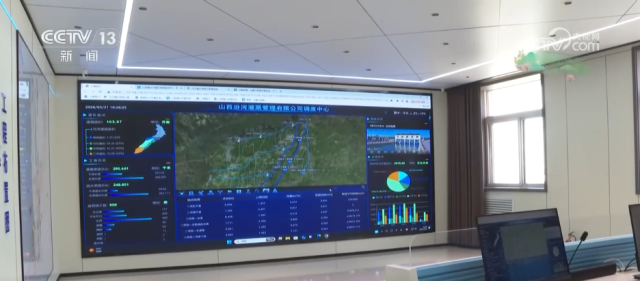 在汾河灌区调度中心,大屏幕上实时显示着水位、流量、流速等关键数据。工作人员根据这些信息,统筹调配灌区水资源,轻点鼠标即可完成远程闸门调控。在灌区的一处闸门旁,水流按照预设流量精准注入干渠,这套测控一体化闸门系统改变了以往人工现场操作的传统方式。