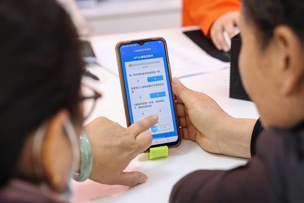 3月25日,上海,闵行区零工市场家政养老行业服务中心,一名前来求职住家保姆的女士在手机上做心理测试题。李茂君/摄
