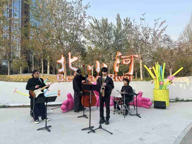 北京北小河岸边的音乐演出。新华社记者 杨淑君 摄