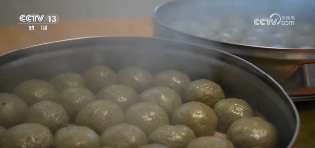 在位于大别山区的安徽省安庆市,这个季节的时令野菜制作出的特色美食——毛香粑,软糯鲜香,别有一番滋味。
