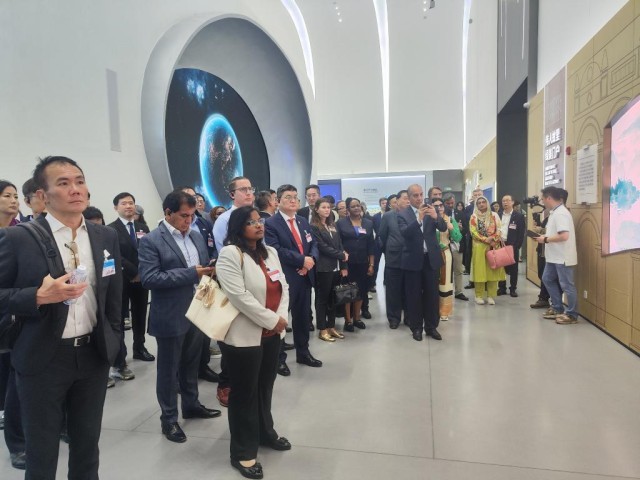 外国在港领团和商界参访团在广东省中山市翠亨新区规划馆参观(4月9日摄)。新华社发(王昕怡摄)