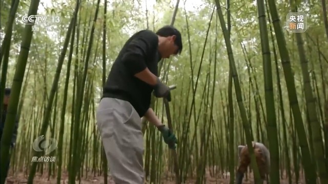 张辉,今年39岁,是周坊镇返乡创业的人里,第一个做本地特色农产品的。记者来到他的雷竹基地时,他正带着村民在竹林里忙活。