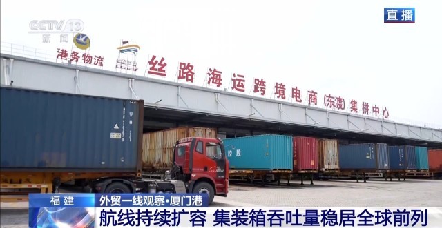 记者来到福建省厦门港,这里岸边桥吊24小时不间断作业,集装箱货车往来穿梭,整座港口一派繁忙火热,处处彰显外贸经济的蓬勃活力。
