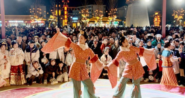 2026年2月18日晚,演员在河南省洛阳市隋唐洛阳城应天门南广场表演。新华社发(高山岳 摄)