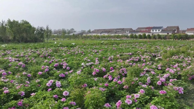 近日,山西省永济市正阳村200余亩牡丹迎来最佳观赏期,各色牡丹竞相开放,吸引众多游客前来踏青打卡。