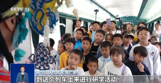 研学团队负责人 姚广彬:我们这个活动发出以后,几分钟就报满了。从春假开始到周末,这几天每天大概都有100名孩子列车上来进行研学活动。