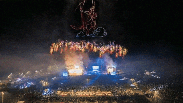 江苏园博园烟花无人机表演。