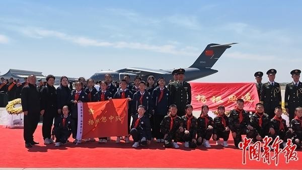 停机坪上,数百人静静伫立。队列前排,32名少先队员格外引人注目——他们来自江苏省泰兴市根思实验学校、河南省许昌市杨根思小学和辽宁省丹东市毛岸英学校杨根思中队。三所学校的名称,都镌刻着抗美援朝战场上英雄的名字。
