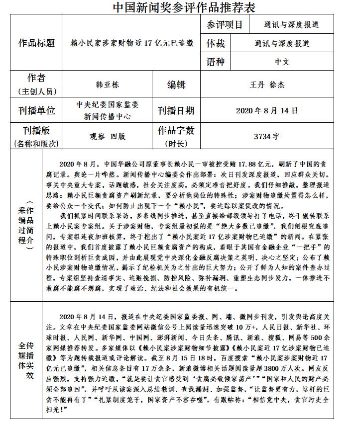 赖小民案涉案财物数量大、种类多,据赖小民案专案组介绍,审查调查过程中,审查组依法对赖小民办公室、住宅、财物藏匿地等涉案场所进行了搜查,对涉案现金、贵重物品、房产、文件资料等进行了查封、扣押,对相关银行、证券、保险账户进行了查询、冻结。对不便搬运、保存及价值不大仍需进一步核实的部分物品原地封存。审查期间,相关涉案人员主动上交了部分涉案财物。审查组全力开展追赃工作,加强与公安机关、银保监会、国家外汇管理局、华融公司的协调沟通,多措并举对资产、资金进行变现、追缴。截至目前,赖小民案涉案财物近17亿元已追缴到位,剩余款项因涉其他在办案件正在追缴中。