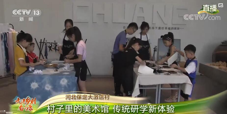 总台记者 杨海灵: 走进大激店村的村口,就踏上了这座古村的历史文化之旅。沿着水清岸绿的百草沟河,一路向村子深处走了,可以看到有100多年的古戏楼,400多年的东明桥,第一次来到这个村子可以感受到村子古色古香的味道。而大激店村绝对不止一面,一座现代感十足的美术馆在竹林掩映下,颜值非常高。