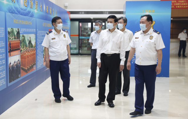 调研期间,王祥喜在部消防救援局一楼大厅观看了习近平总书记向国家综合性消防救援队伍授旗致训词展板以及改革转制以来消防被装成果展示,详细了解队伍改革发展情况。王祥喜对消防救援队伍改革转制以来各方面取得的成绩给予充分肯定,指出广大消防救援人员始终奋战在人民群众最需要的地方,随时可能面对极端情况和生死考验,作出了重大牺牲奉献。他代表部党委向全体消防救援人员表示亲切慰问,向长年奋战在消防救援一线的同志们致以崇高敬意。