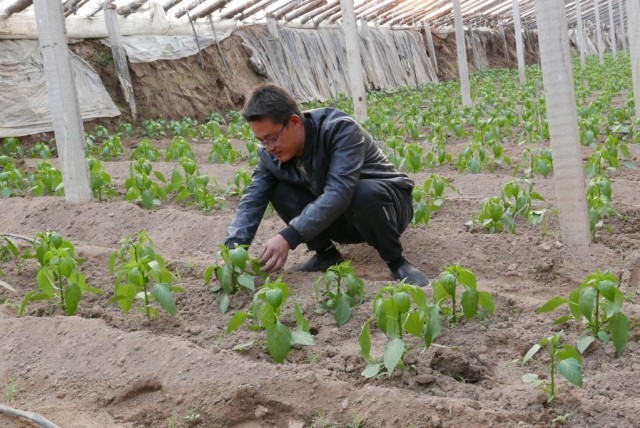 耿店村返乡创业的耿付建正在查看辣椒苗长势。新华社记者袁敏 摄