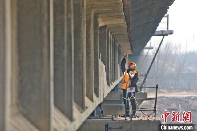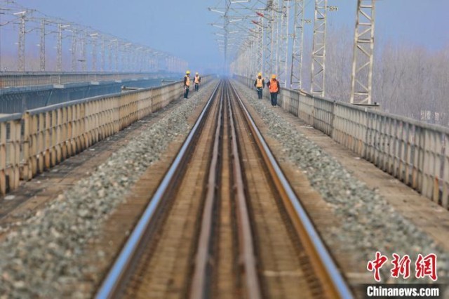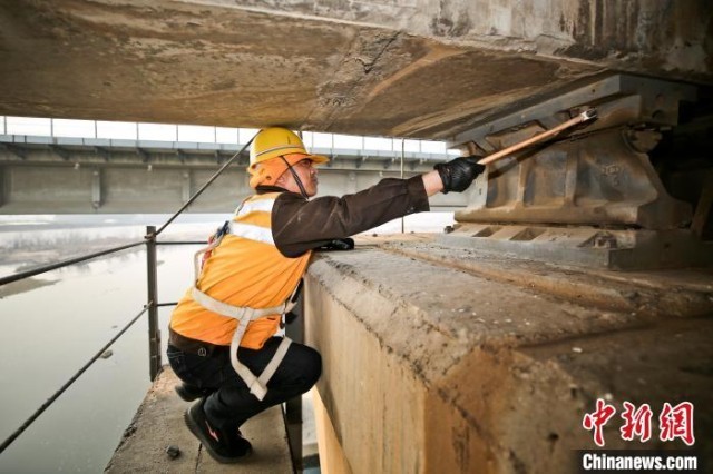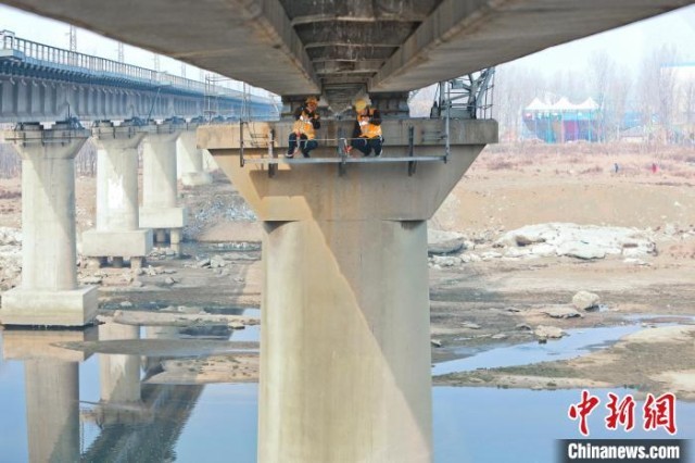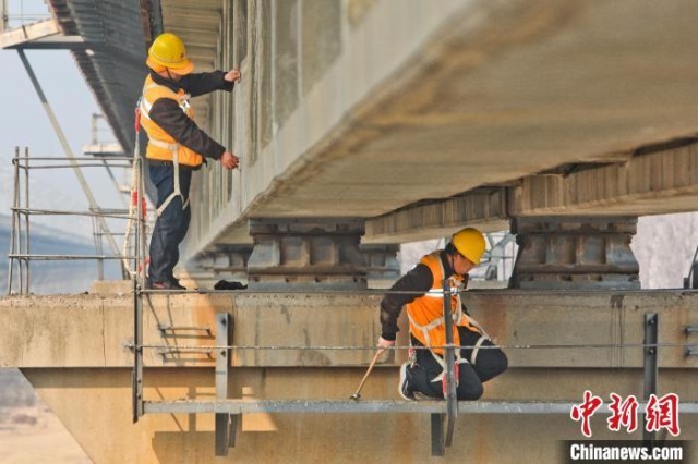 2月6日,中国铁路郑州局集团有限公司南阳工务段为加强豫西南线路设备的养护维修,组织铁路职工到跨越境内白河的宁西铁路线桥梁上,进行巡检把脉、维护作业,全力保证铁路桥梁设备质量稳定。