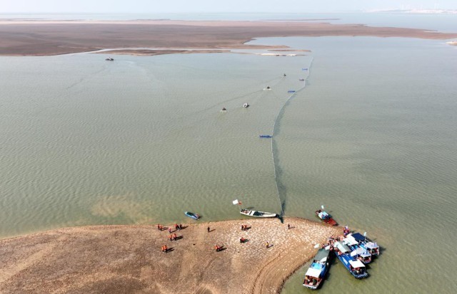 春寒料峭里,鄱阳湖松门山南部砂坑水域有20多艘船停泊,大伙或拉网准备捕捞、或准备体检设备,都在为江豚“搬家”忙碌准备着。
