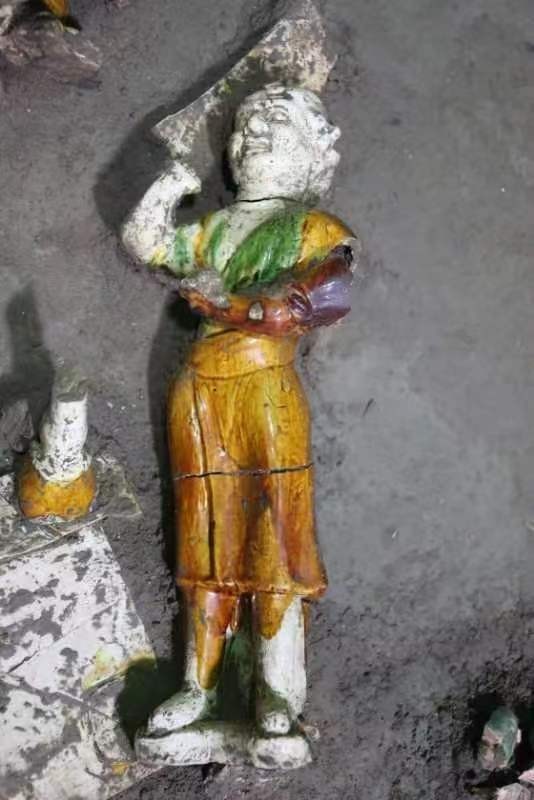 图为朱满墓中发掘的唐三彩。(济南市考古研究院供图)