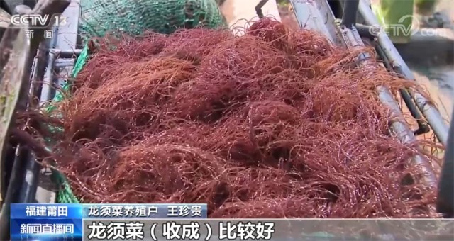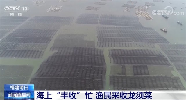 央视网消息:这几天,在福建莆田南日岛海面上,渔民趁着晴好天气抓紧采收这一季的龙须菜。