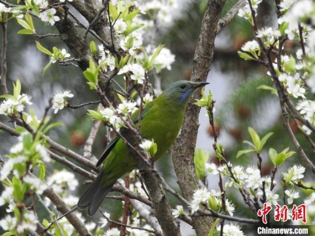 中新网宜昌3月15日电 (向明贵 宗宇)湖北五峰后河国家级自然保护区管理局14日发布消息,该保护区工作人员在日常监测中发现了一只橙腹叶鹎。经鉴定,确定该物种为后河保护区首次发现,刷新了该保护区鸟类新记录。