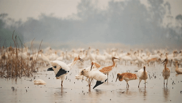中国最大淡水湖鄱阳湖是濒危物种白鹤的主要越冬地。每到秋冬时节,全球约98%的白鹤从俄罗斯西伯利亚飞越数千公里来到鄱阳湖越冬。