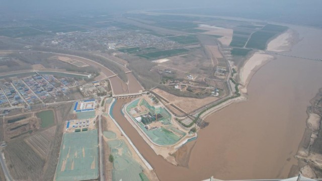 黄河和正在施工中的位山引黄闸改建工程。新华社记者刘诗平 摄