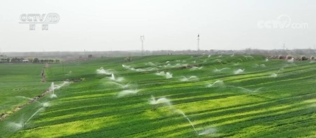 在湖北省老河口市袁冲乡孟桥川村的麦田里,40多个喷头正在均匀地喷洒着水肥。据统计,今年1—3月,老河口市降水量比去年同期减少一半以上,给正在孕穗期的麦苗生长造成影响。三月底,当地从丹江口水库引水的干渠改造工程完工,开始开闸放水,农田灌溉问题得到解决。