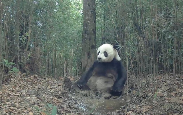 2023年初,大熊猫国家公园荥经片区一处红外相机拍摄到的野生大熊猫。(大熊猫国家公园雅安片区供图)