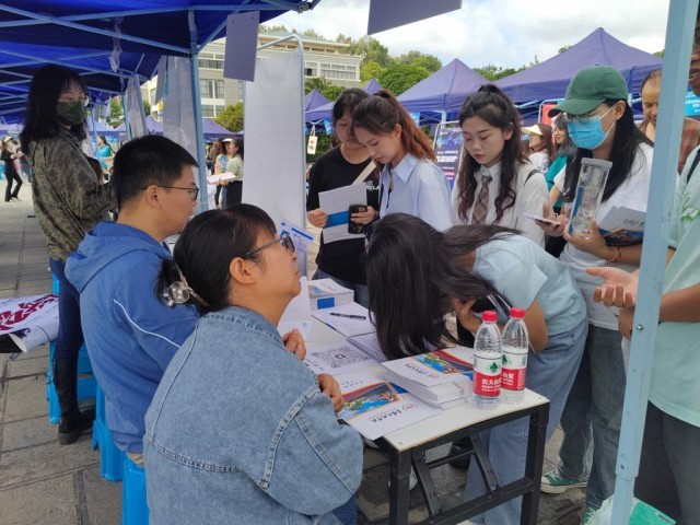 在昆明学院洋浦校区举行的招聘会现场。(曹薇 摄)