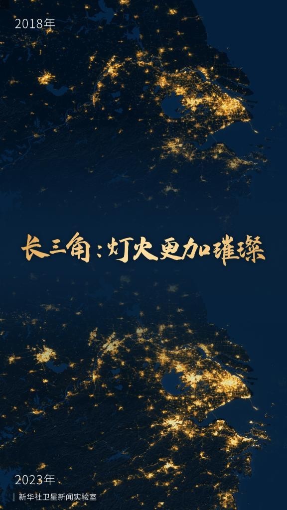 遥感卫星能够捕捉到地表的夜间灯光等辐射源。从太空俯瞰长三角区域,璀璨灯火记录着一体化发展迸发出的强劲活力。