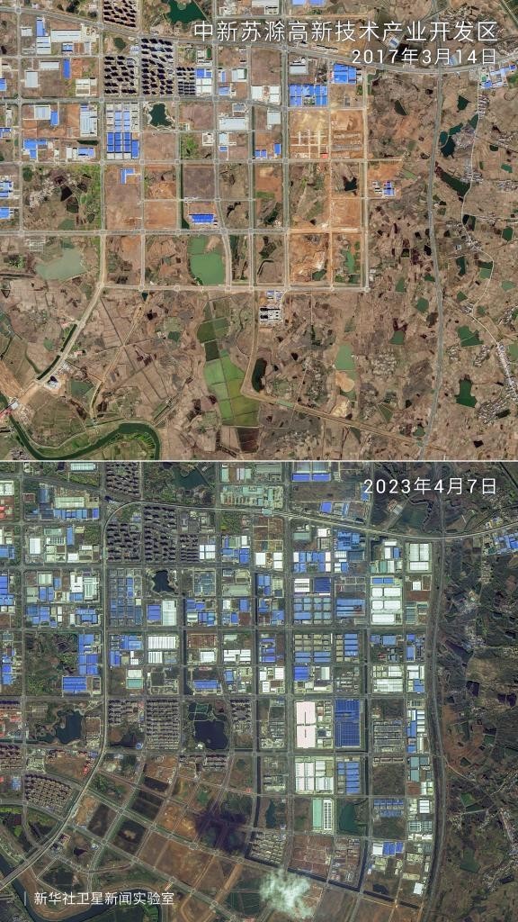 遥感卫星跟踪拍摄,中新苏滁高新技术产业开发区的建成区规模迅速扩大。