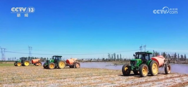 在玛纳斯县乐土驿镇的棉花田里,3台装有北斗导航系统的大马力拖拉机,正按照预先设定的线路进行除草作业。这是农技人员通过卫星遥感棉花全程监测技术,帮种植户制定的科学田管方案。