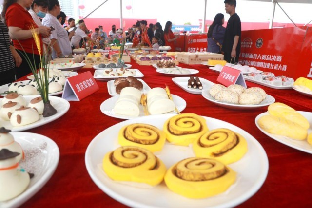 2023年5月,监利毛市佬面点美食文化节上展出的各式面点。(徐美平 摄)