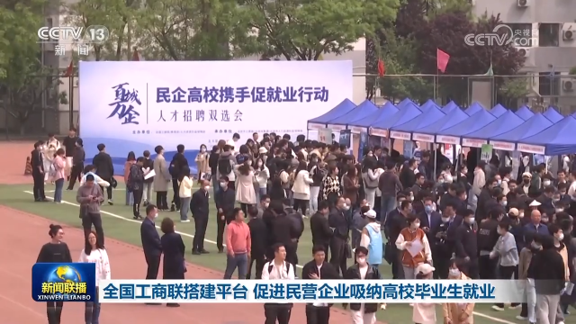 央视网消息(新闻联播):全国工商联通过为高校毕业生和民营企业搭建对接平台,提供岗位精准匹配和就业指导等服务,积极促进高校毕业生就业。