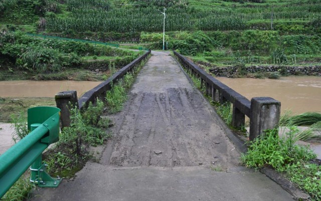 7月9日拍摄的太湖县牛镇镇同义村王屋组石桥,桥上还留有洪水漫桥时的痕迹。新华社记者周牧 摄